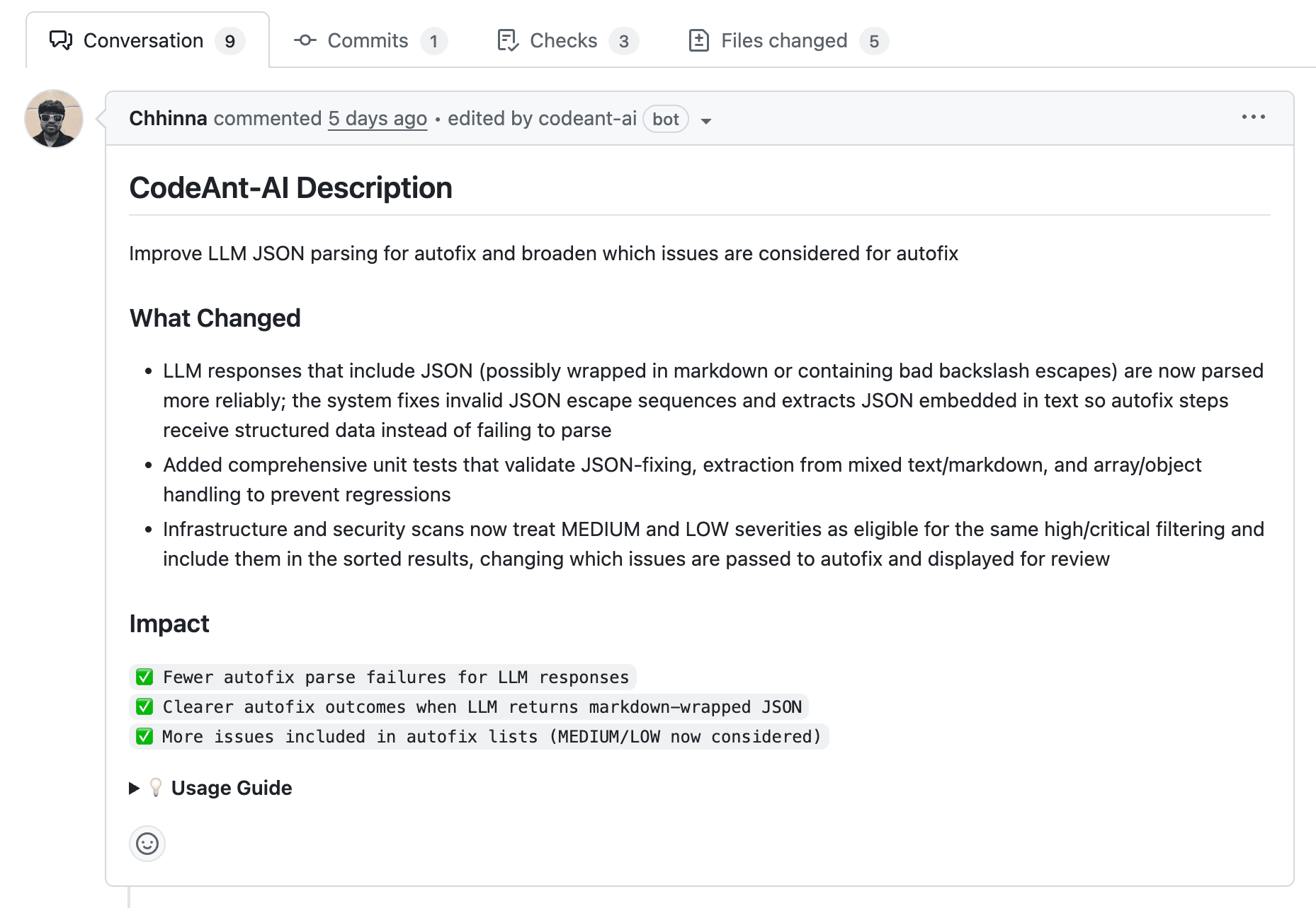 GitHub's pull request interface shows you diffs. That's it. Reviewers see what changed but get no hints about potential bugs, performance issues, or security risks. There's no contextual guidance, no auto-generated summaries for large PRs. You're left reading hundreds of lines manually, hoping you catch what matters.