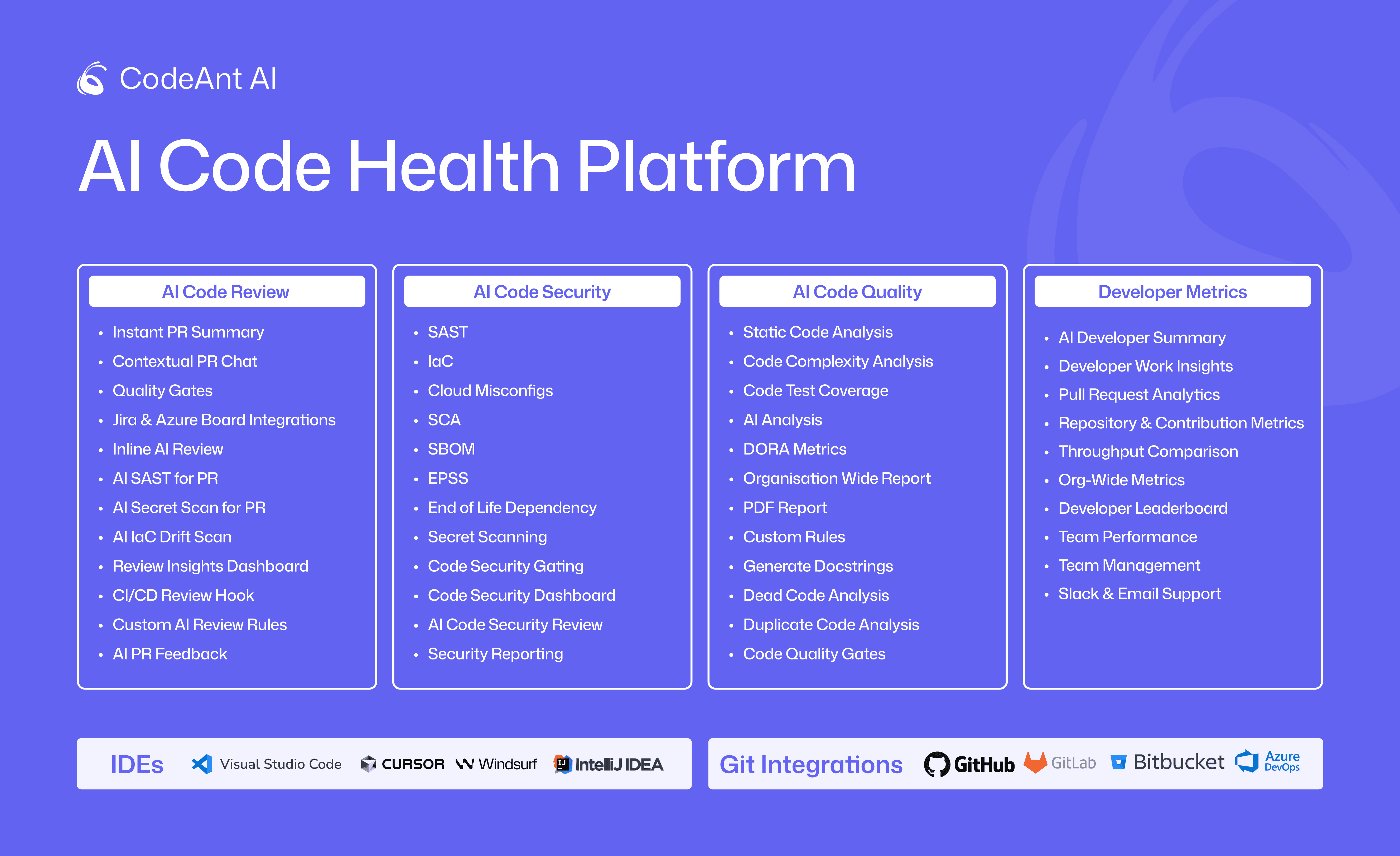 CodeAnt AI takes this unified approach, combining automated code review, security scanning, and quality tracking into one platform that understands your codebase and helps your engineers move faster with confidence.