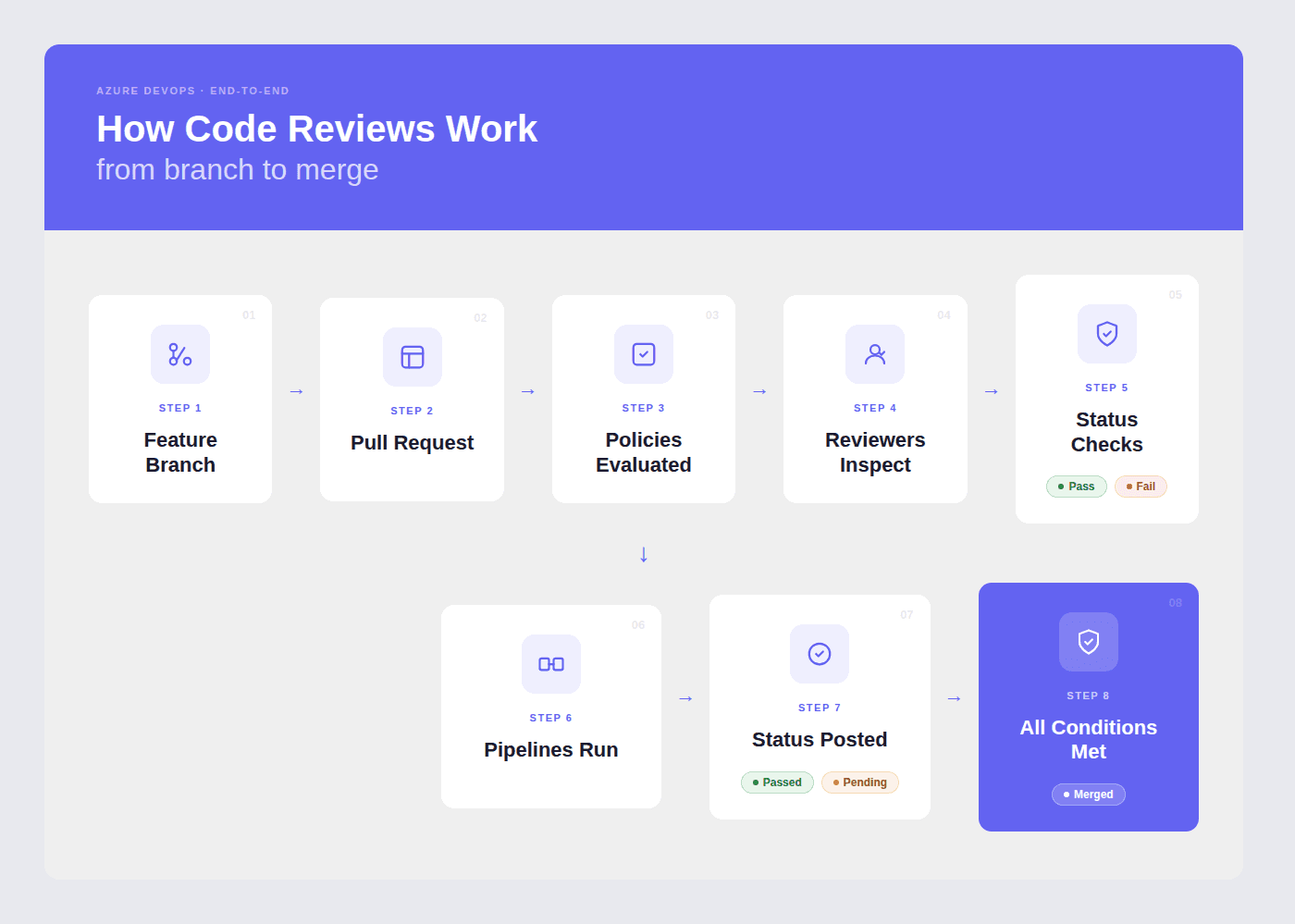 Branch policies are the enforcement layer of code review in Azure DevOps. They turn review best practices into rules that every PR must satisfy before merging.