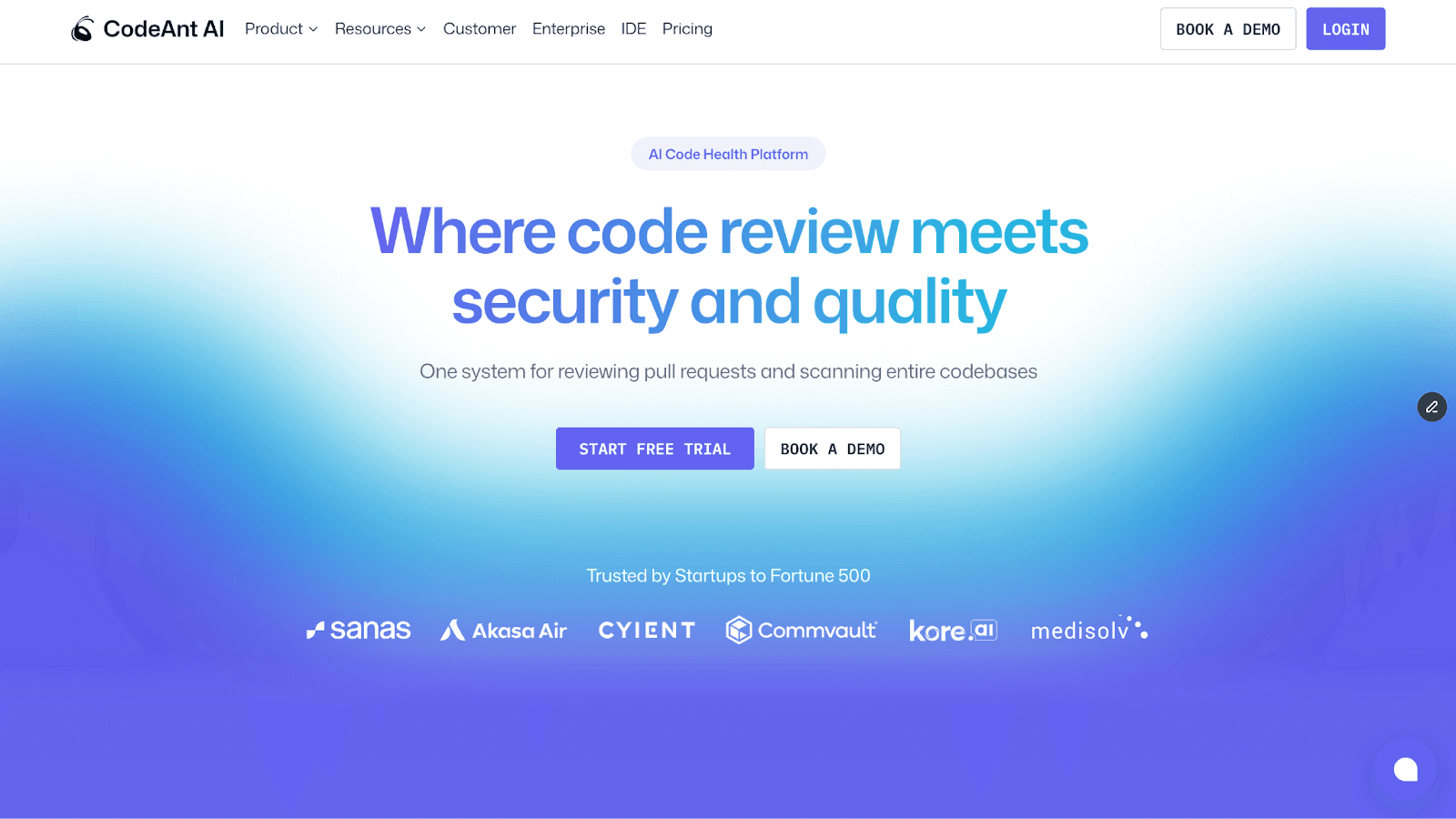CodeAnt AI is an AI-native code security and review platform that combines SAST, SCA, secrets detection, and Infrastructure-as-Code scanning into a single PR-native workflow across GitHub, GitLab, Bitbucket, and Azure DevOps.
