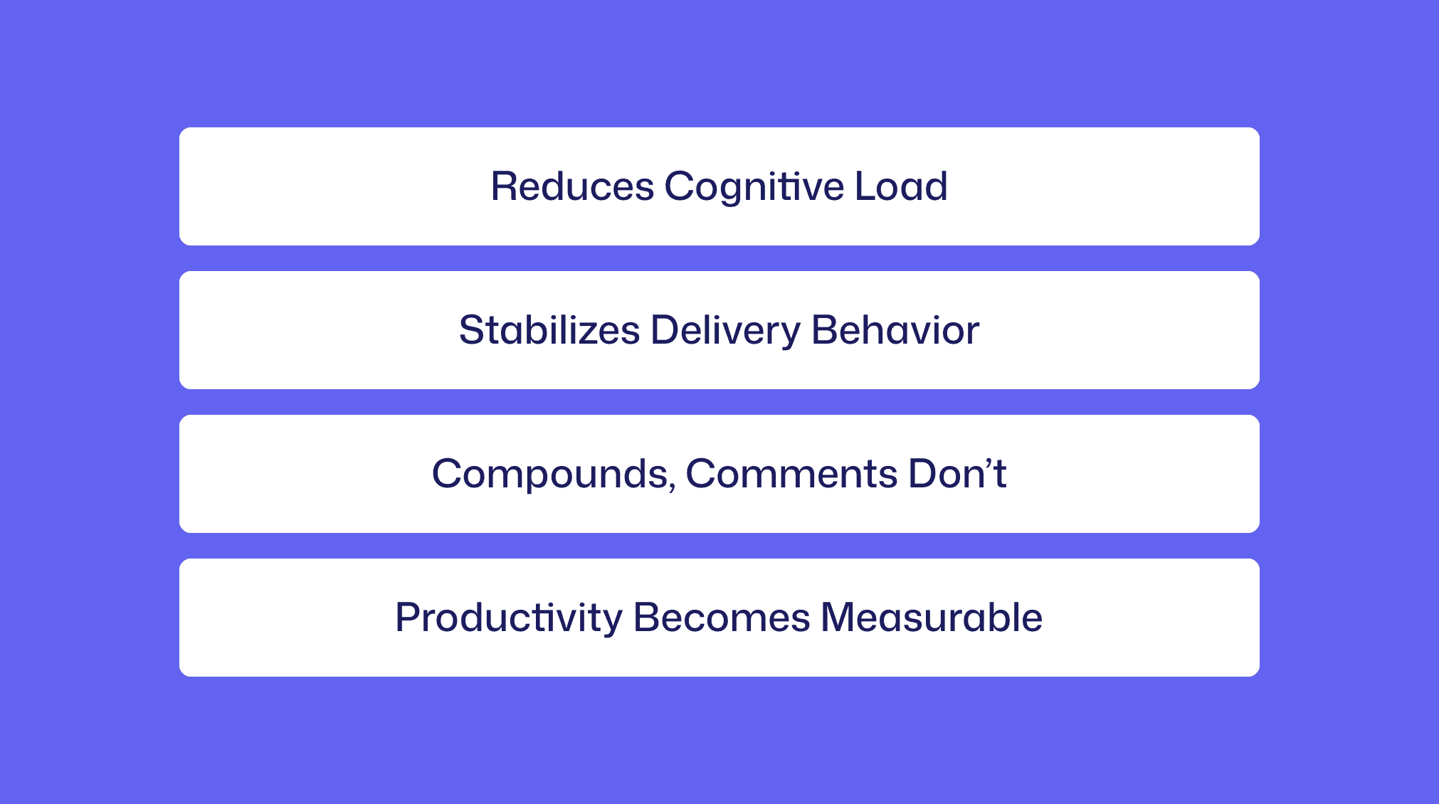 Comments solve a moment. Guardrails change the slope of your engineering velocity curve. Compounding code quality is the real “10x developer” effect.