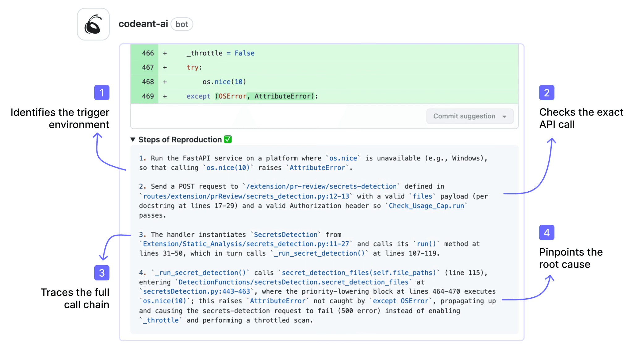 CodeAnt AI generates Steps of Reproduction for every finding: