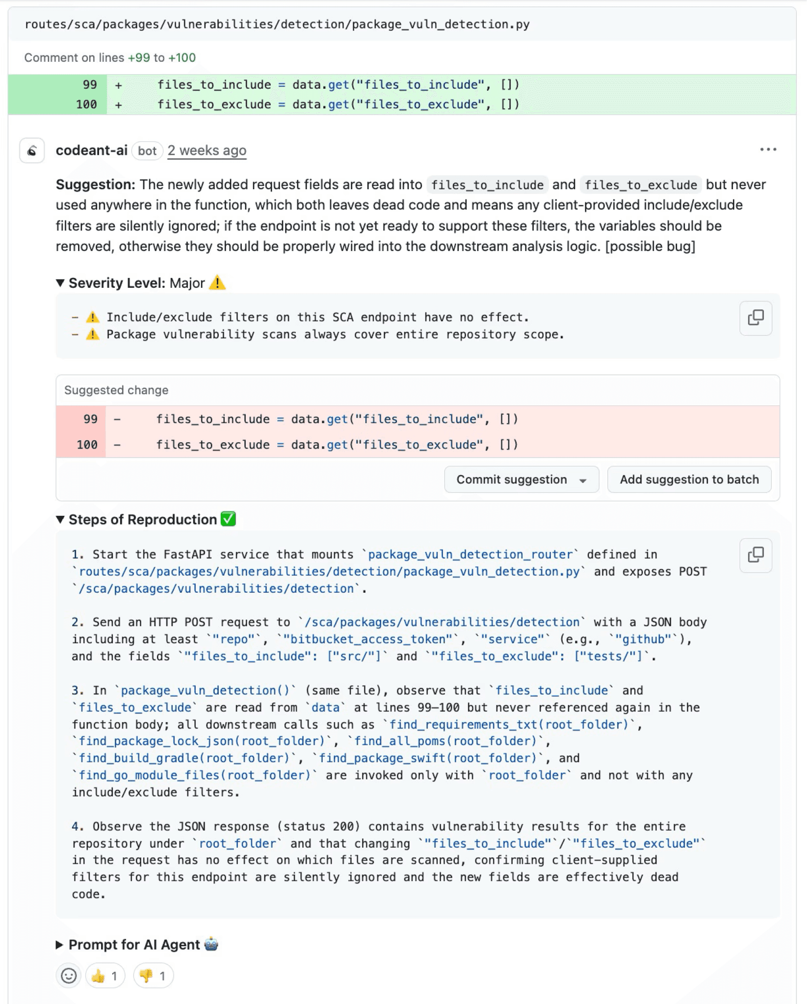 CodeAnt AI generates Steps of Reproduction for every finding: the exact entry point, the complete taint flow, the vulnerable sink, and a concrete exploitation scenario.