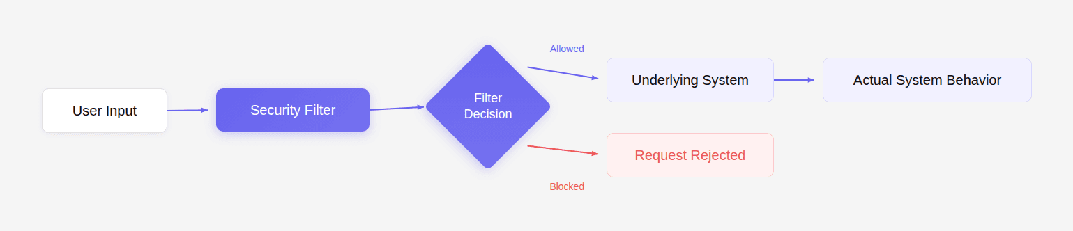 That gap between the filter's assumptions and the system's behavior is where many real-world vulnerabilities live.