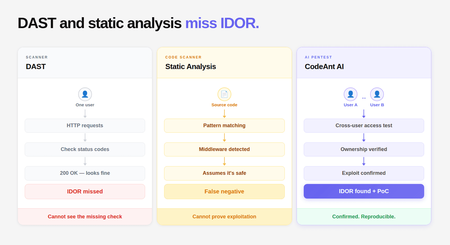 why DAST and static analysis structurally cannot find most IDOR vulnerabilities