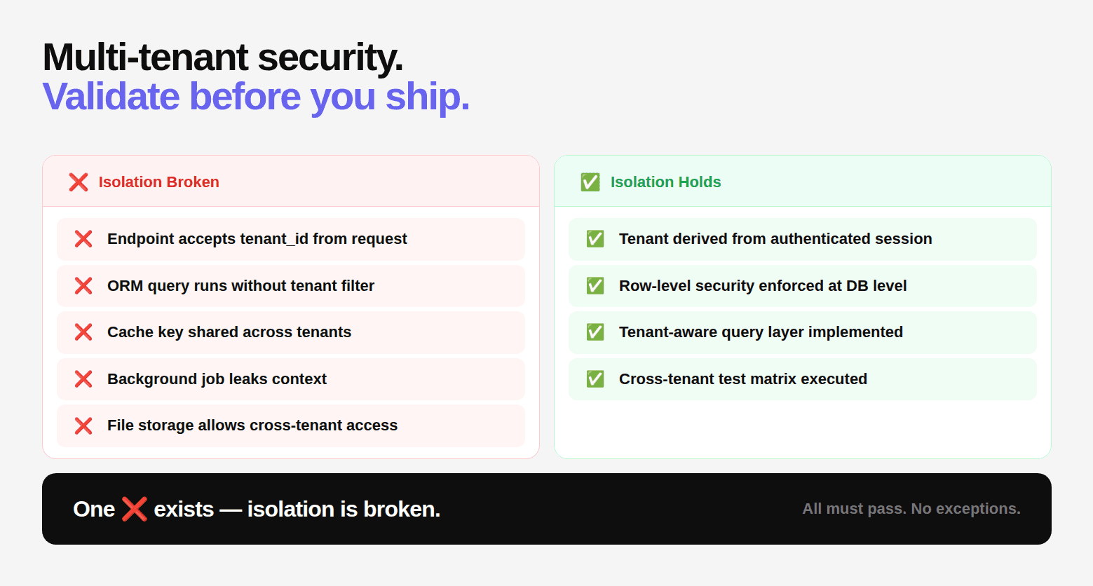 If even one ❌ exists, isolation is broken.