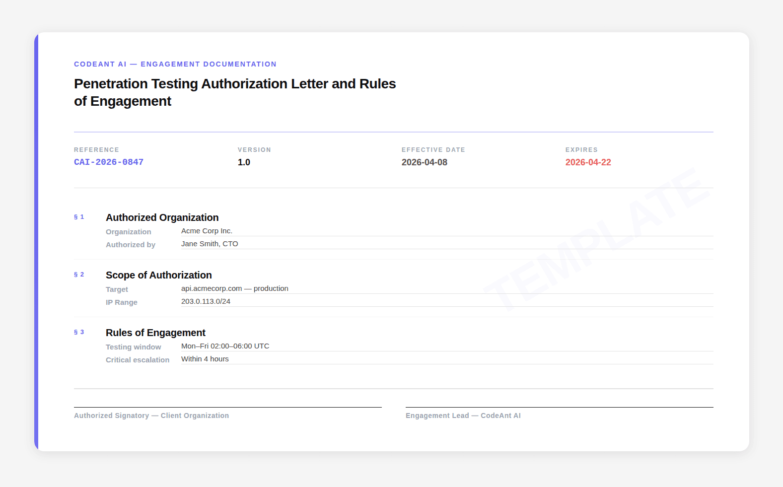 This template is designed to remove that ambiguity. It translates legal intent into operational clarity, defining exactly what can be tested, how it can be tested, and what happens when something goes wrong. That is what protects both the organization and the testing team.