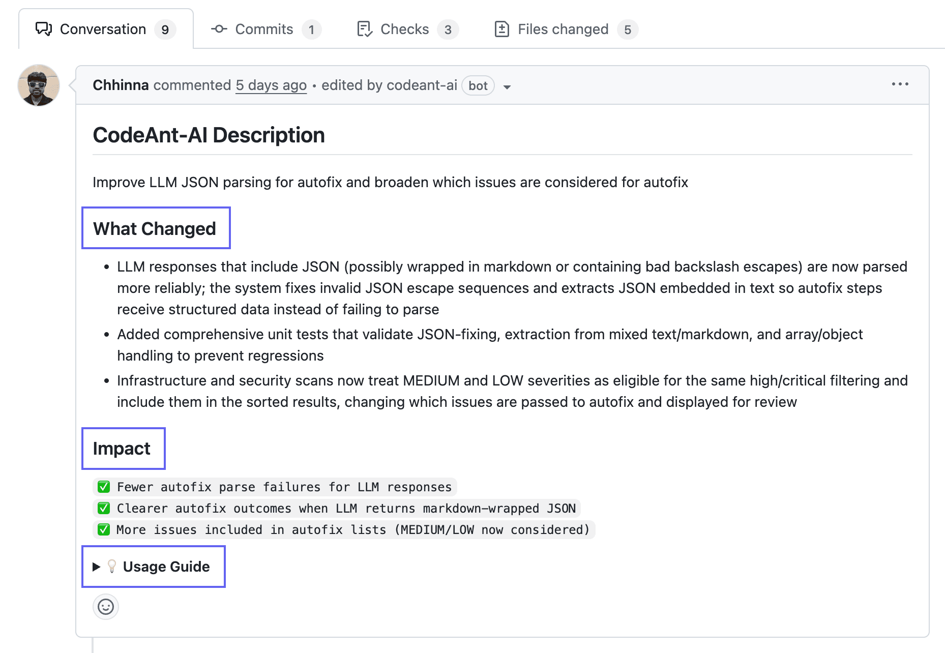 Before diving into the diff, reviewers benefit from a plain-language summary of what the PR does. AI-generated summaries answer "what is this PR trying to accomplish?" in seconds.