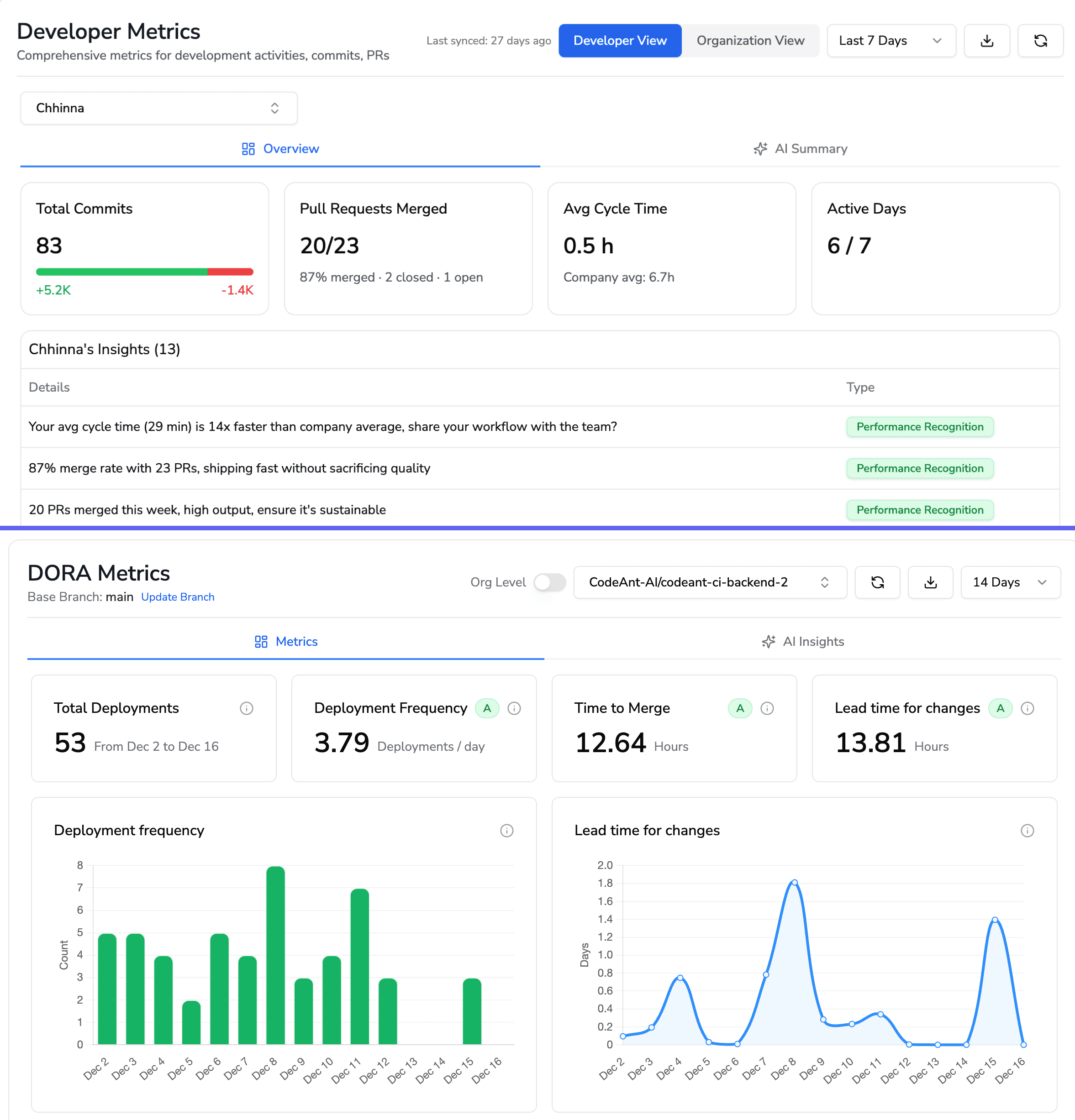 Metrics Dashboards and DORA Tracking
