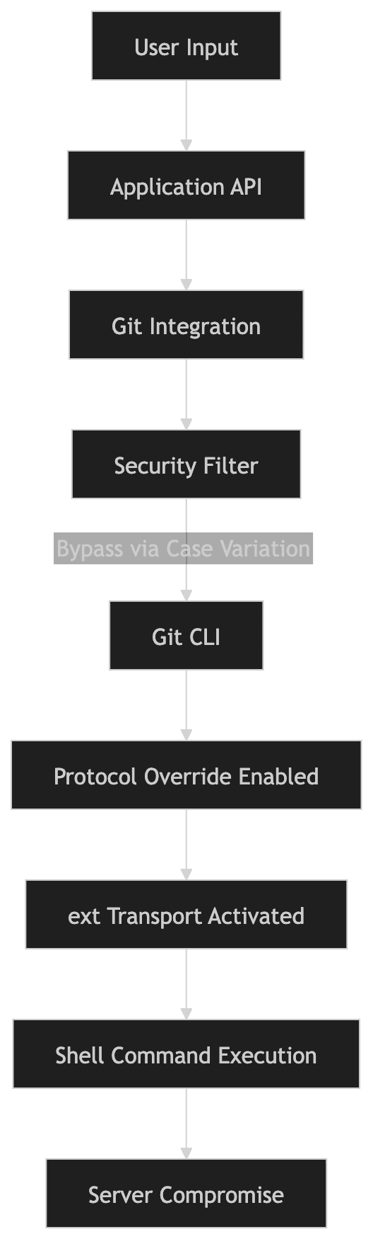 In that case, a single case-sensitivity mismatch inside a regex filter allowed attackers to bypass a security control and enable Git’s dangerous ext:: transport protocol, ultimately executing arbitrary shell commands.