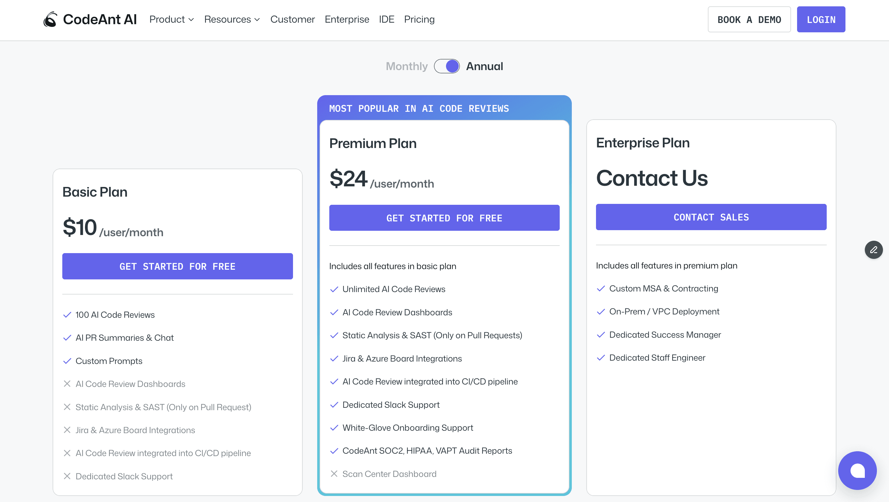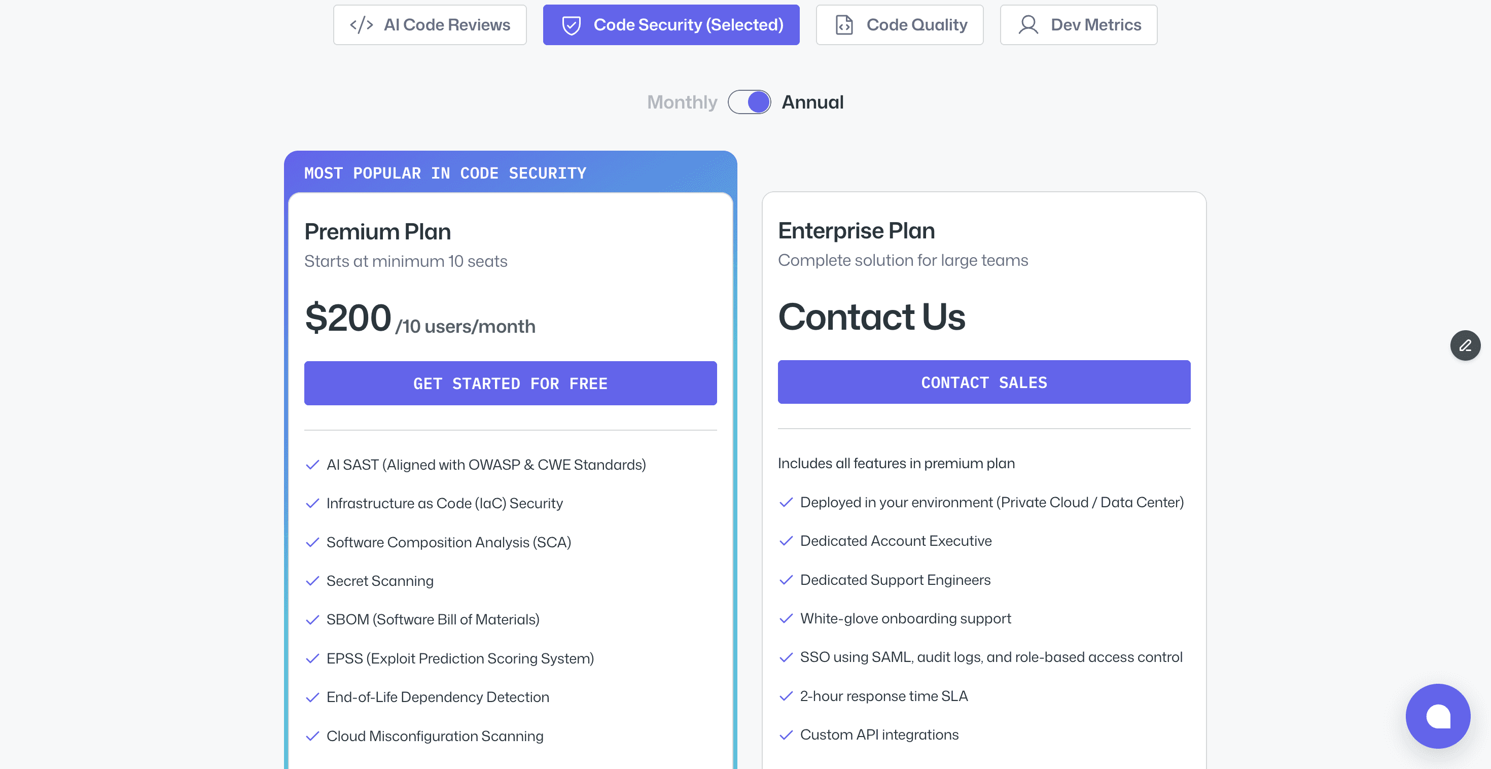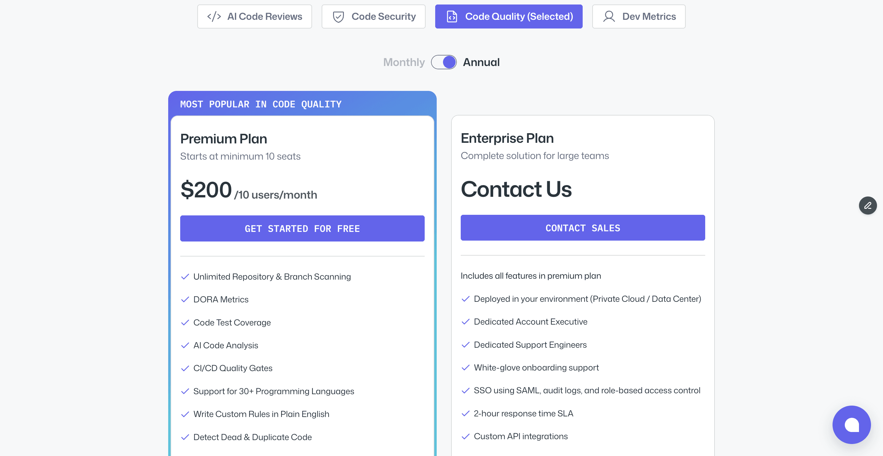 After that AI Code Reviews are: $10/user/month [Basic Plan], Premium plan starting from $20/user/month.
