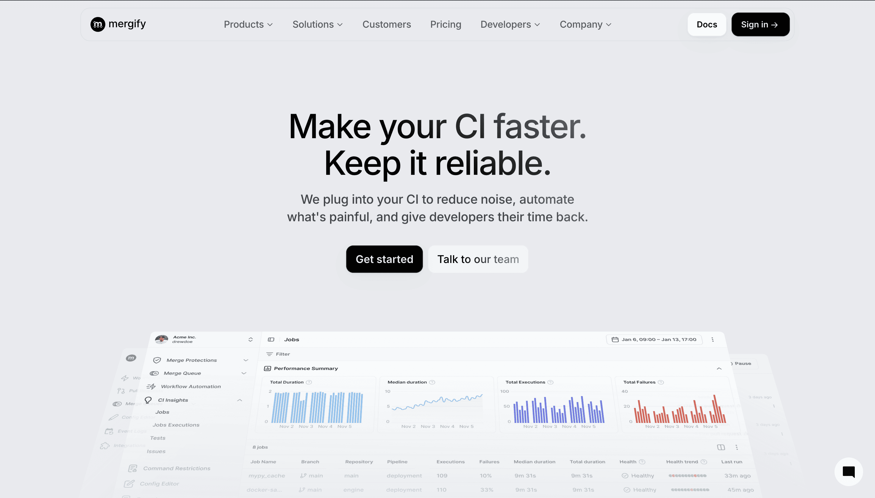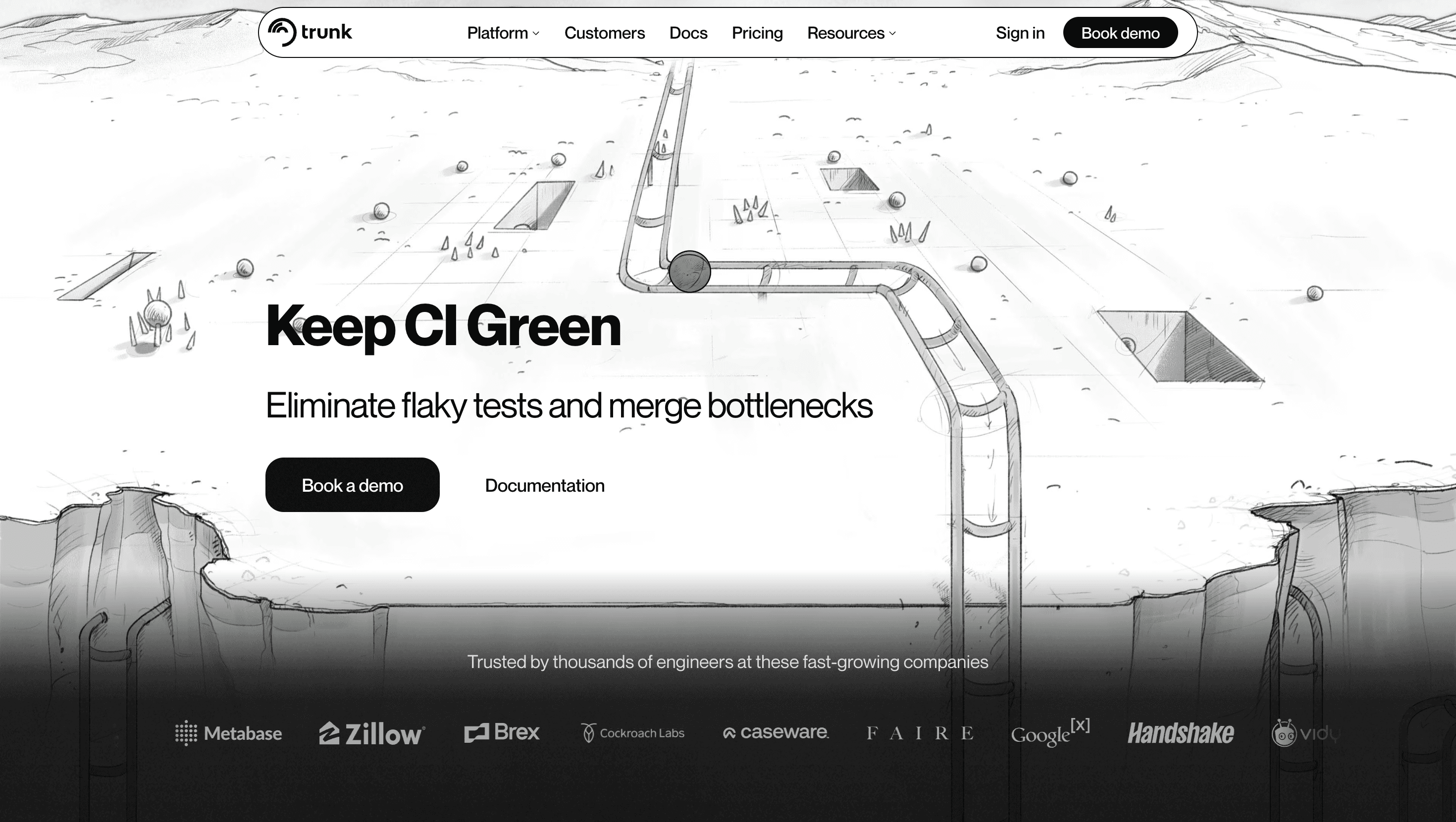 Trunk's differentiator is flaky test management. It automatically detects, quarantines, and reports on flaky tests across 25+ frameworks, preventing false failures from blocking merges. Case studies are strong: Faire saved 9.4 hours of engineering productivity per day; Caseware cut merge time from 6 hours to 90 minutes.
