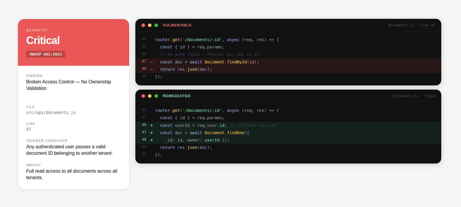 That's the level of specificity a white box engagement should produce. Engineers fix the right thing on the first attempt.