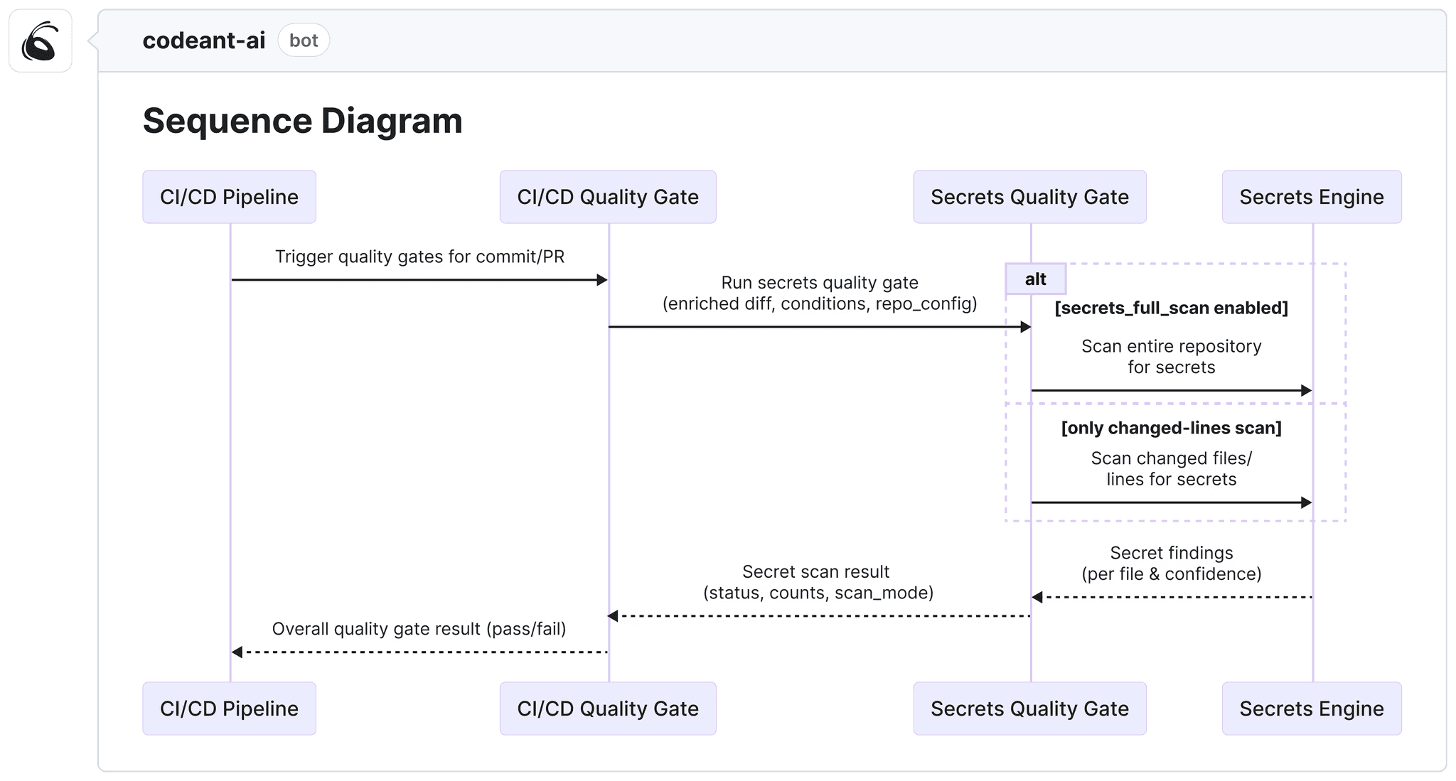 Secrets detection → entropy-based and pattern-based scanning for exposed credentials, tokens, and API keys