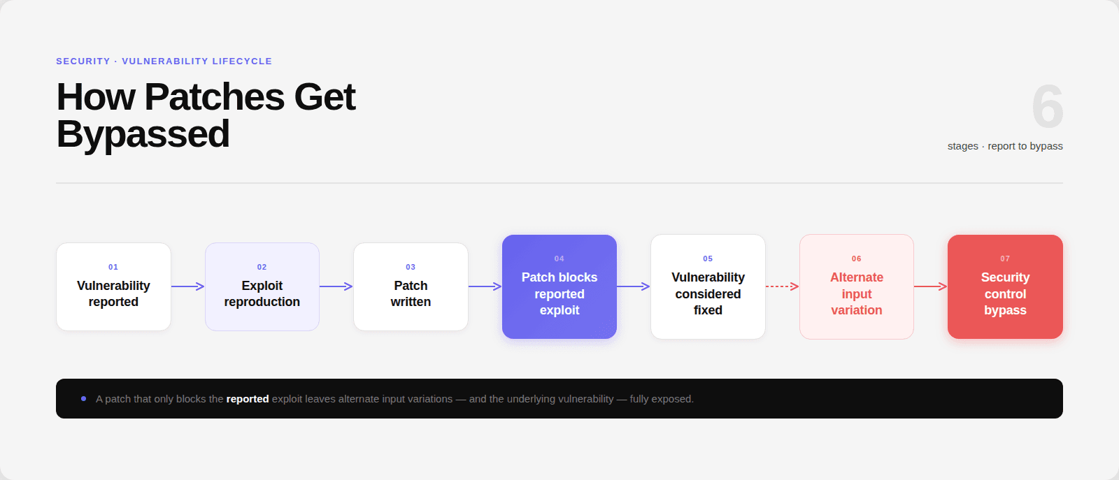 But the patch focused on specific input patterns, not the underlying security property.